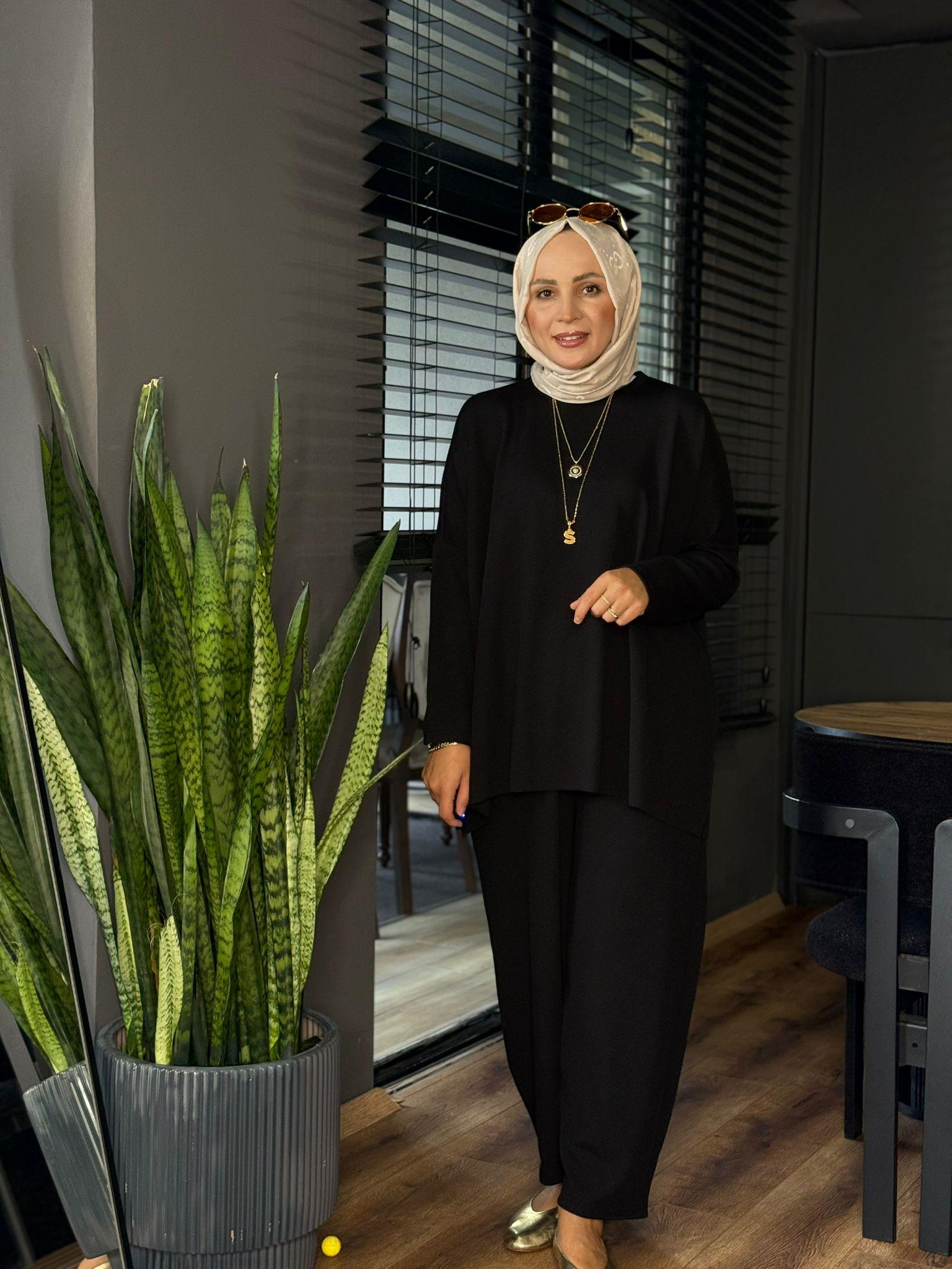 22761 ASİMETRİK KESİM TAKIM SİYAH