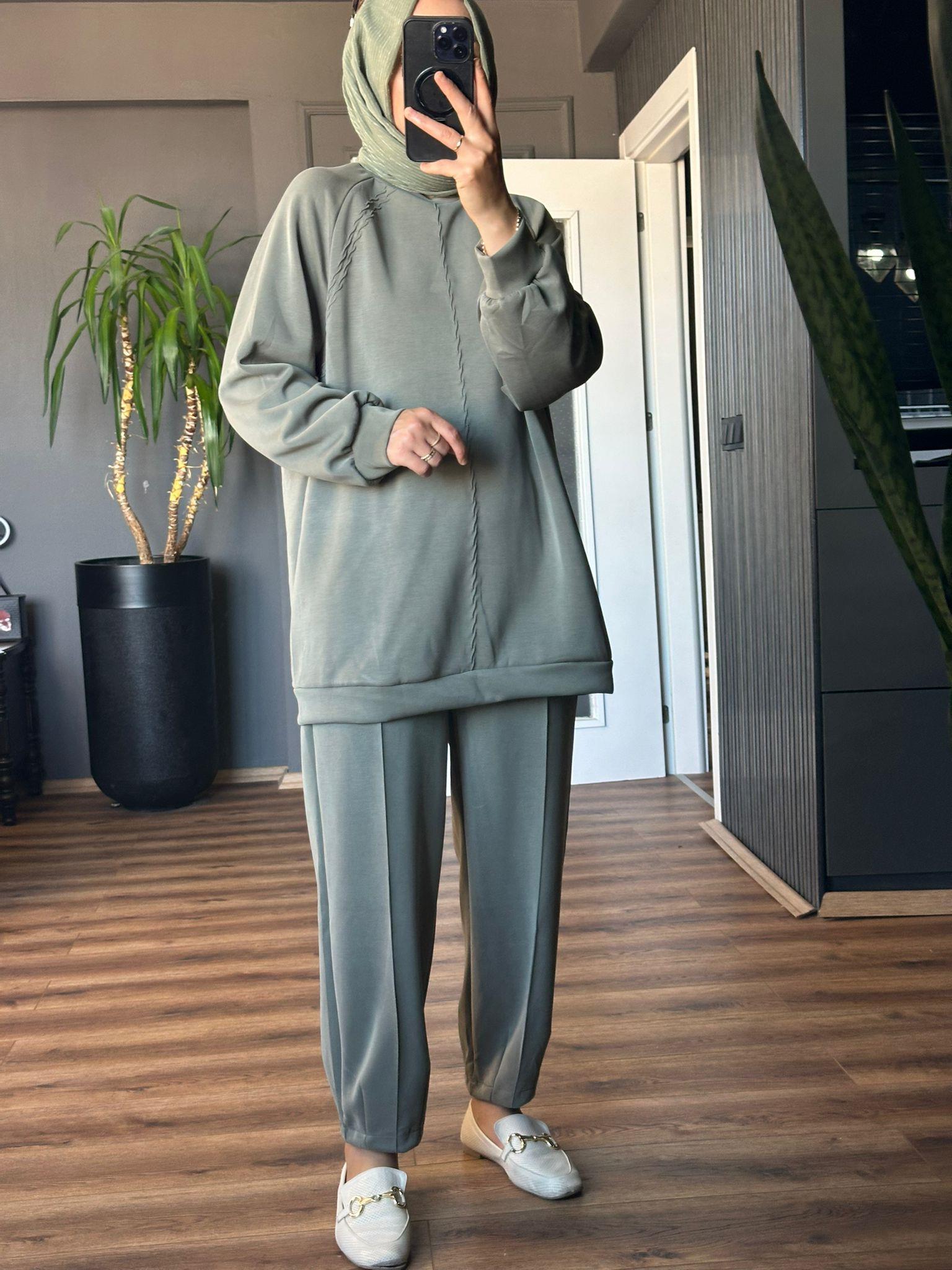 22767 DİKİŞ DETAYLI OYSHO TAKIM MİNT YEŞİLİ
