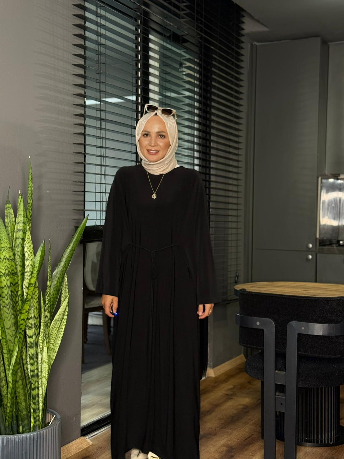25117 İPLİ SENDY KUMAŞ ELBİSE SİYAH STD Selma Butik