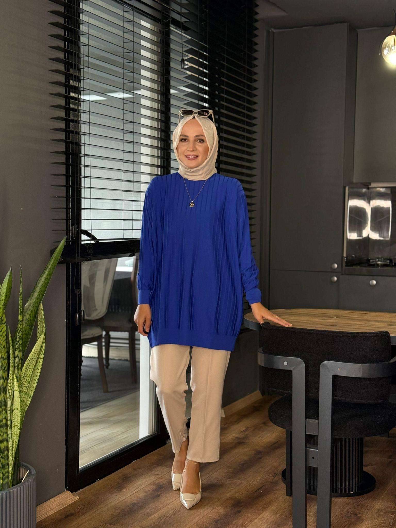 40430 MERSERİZE TUNİK SAKS MAVİ STD Selma Butik