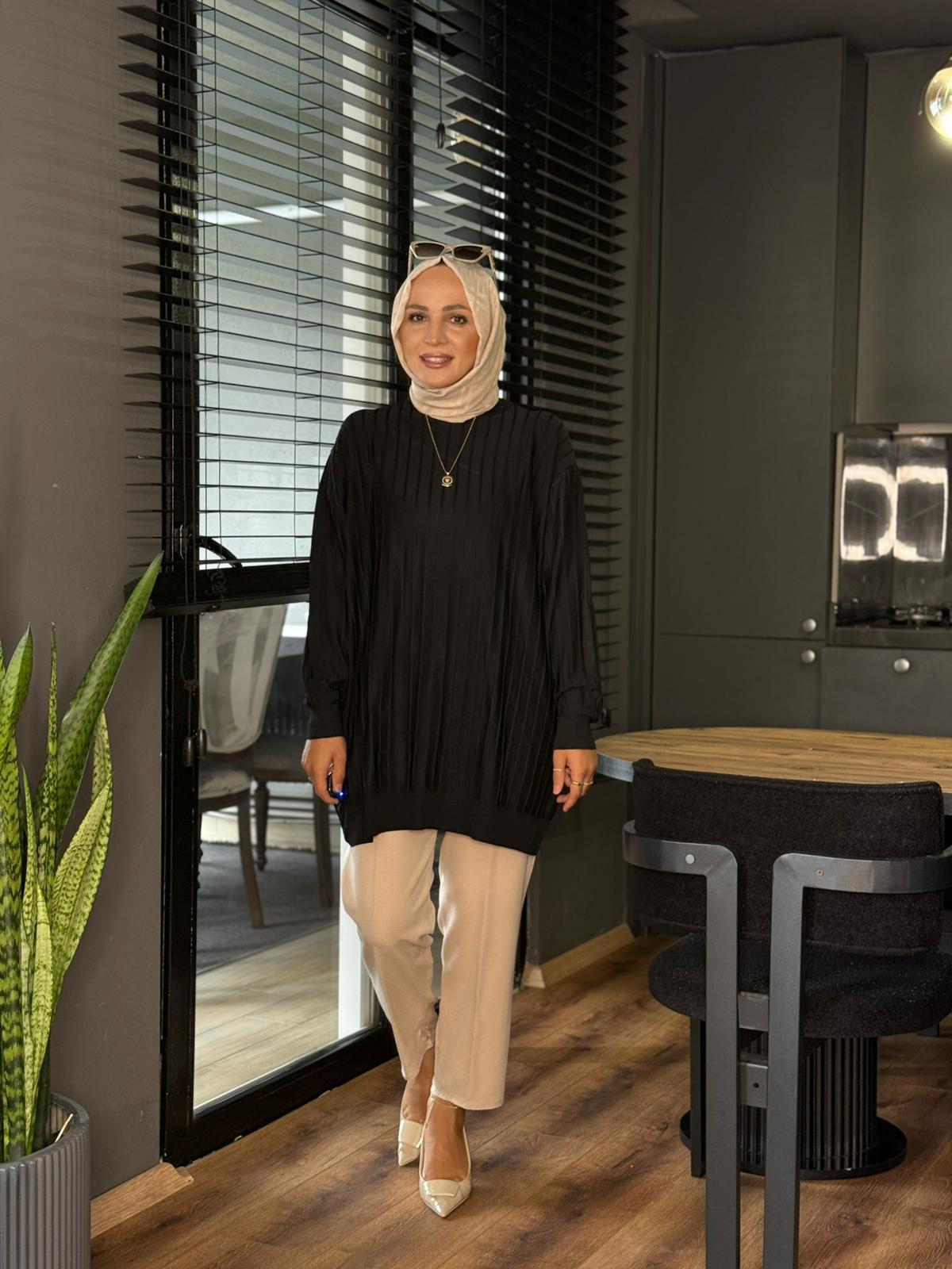 40430 MERSERİZE TUNİK SİYAH STD Selma Butik