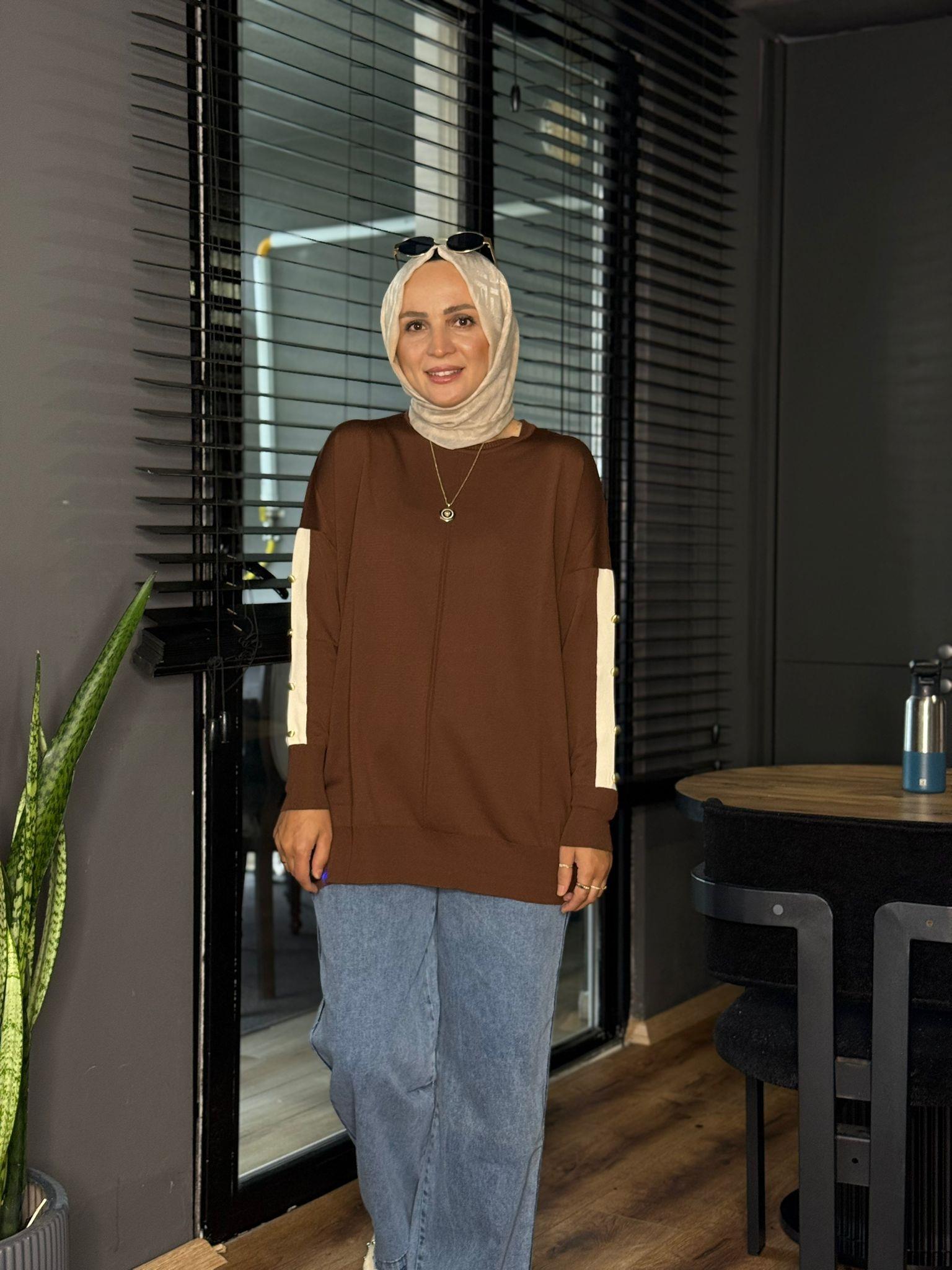 40994 KOL DETAY MERSERİZE TRİKO KAHVERENGİ STD Selma Butik
