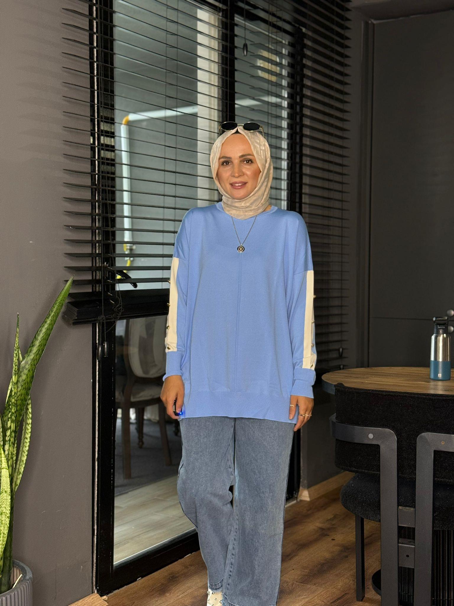 40994 KOL DETAY MERSERİZE TRİKO MAVİ STD Selma Butik