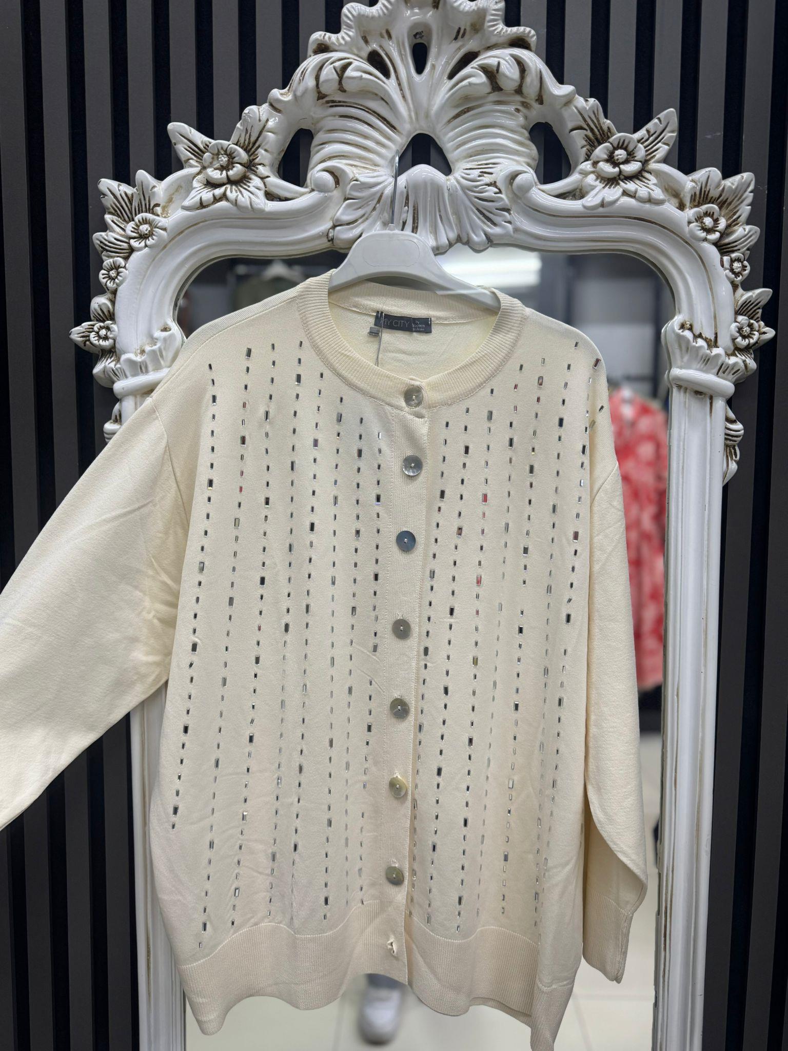 44039 TAŞLI HIRKA KREM STD Selma Butik