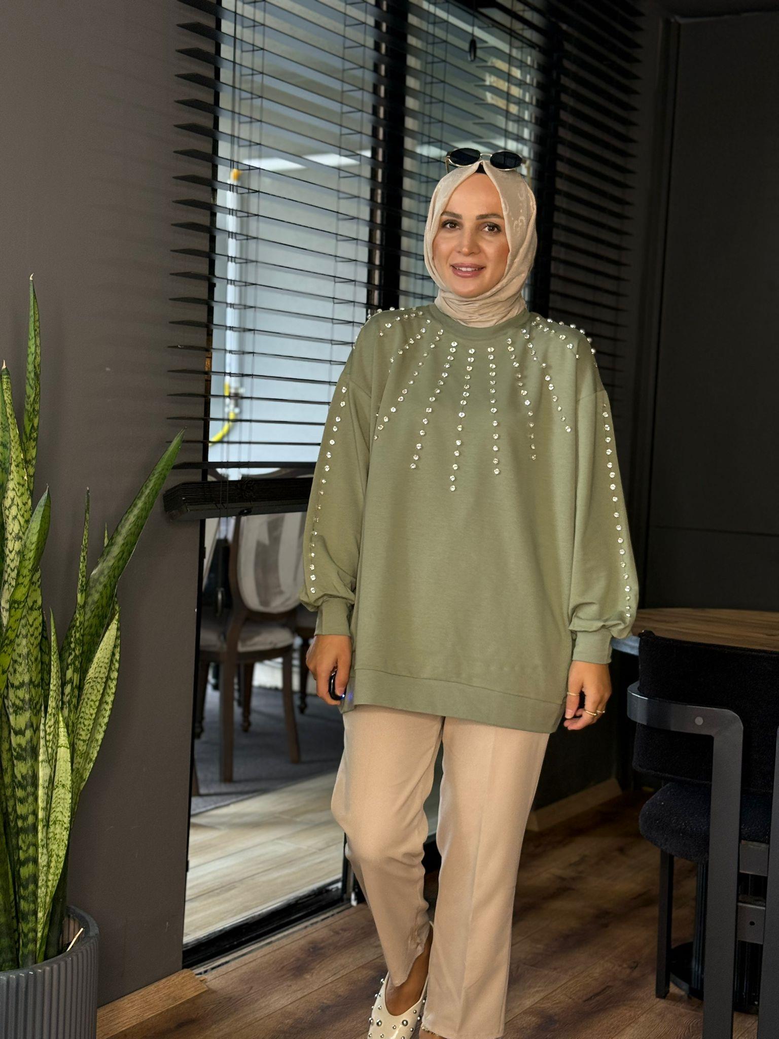 5608 TAŞ DETAY TUNİK MİNT YEŞİLİ