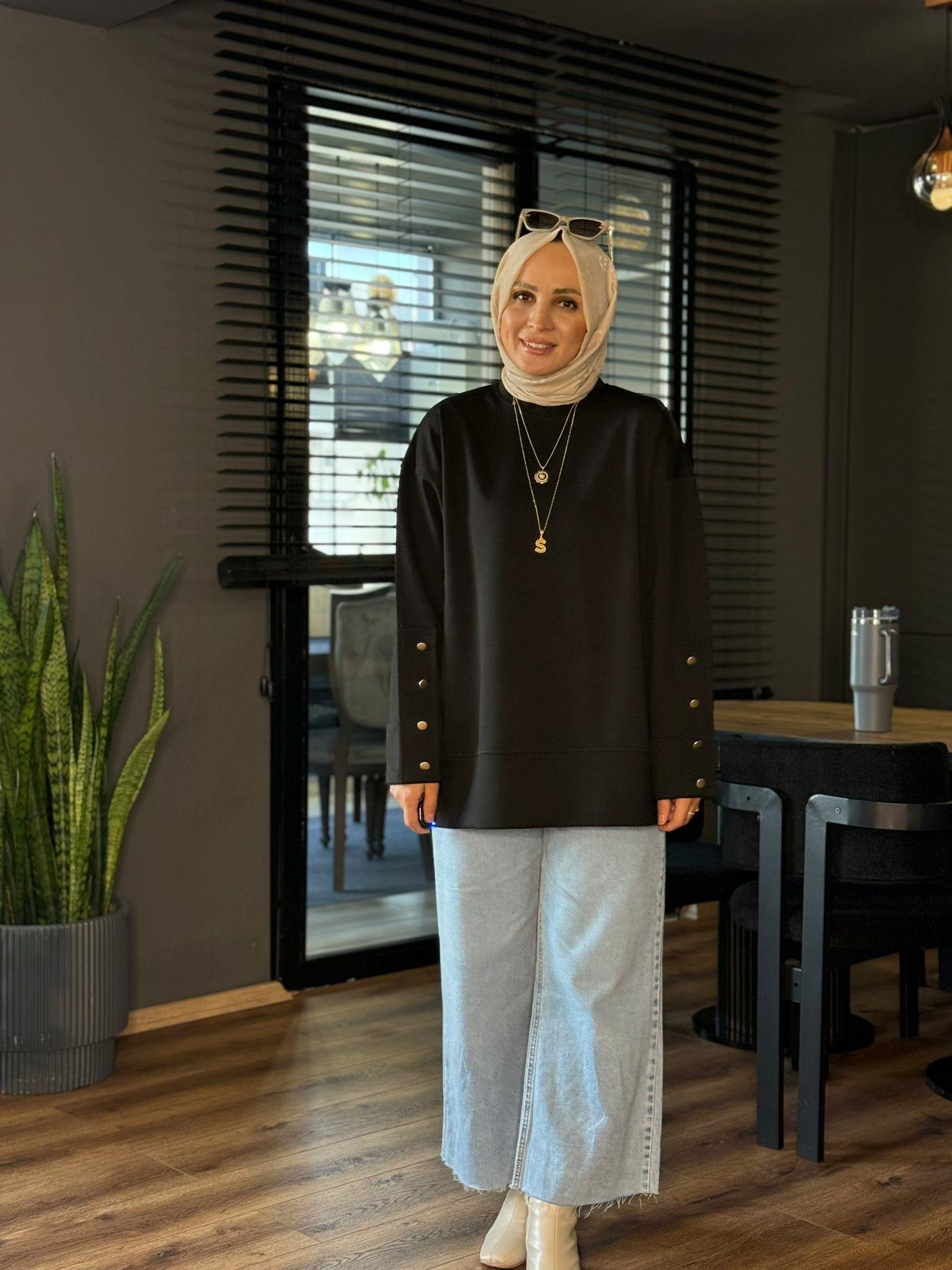 6074 KOL DÜĞME DETAY TUNİK SİYAH S-M Selma Butik